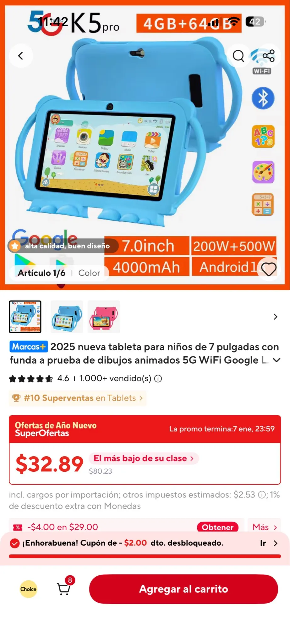2025 New 7 Inch Kids Tablet with Cartoon Proof Case 5G WiFi Google Learning Education Tablet PC 4GB RAM 64GB ROM 4000mAh